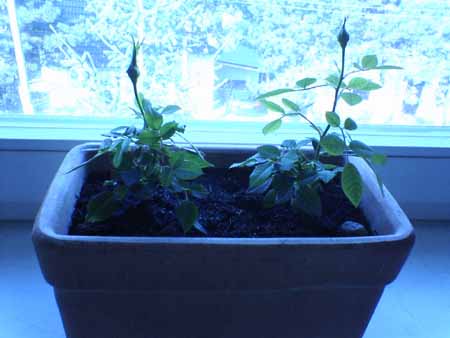 ドイツでも季節ごとにいろいろな花が売られている。菊もよく見かけるけど、ドイツで見てもなんとなく辛気臭い、たとえ小さな野菊のかわいらしいものでも。鉢植えは小さなプラスチックの鉢だけど、日本で売られているようなふにゃふにゃじゃない丈夫なプラ鉢。大き目の鉢に植え替えたり、地植えにしたり。または陶器の鉢カバーにすっぽり入れて部屋に飾ったり。おじさんところはこの鉢カバーに入れてテーブルを飾っている。一時的に飾るのならこれが簡単でいいのだろうけど、根が張ってまだ生きてるのに捨てるのはちょっと忍びないような気がする。バジルの鉢植えをスーパーで買った時、素焼きの鉢をあちこちで探したんだけど見当たらなかった。園芸専門店みたいなところも見てみたけど、底に穴がなかったり、あってもサイズがでかかったり。意外と素焼きの鉢は人気がないのか。プラ鉢だと日当たりのいいとこに置くと熱がこもってあんまりいくない気がするし水はけも悪そう。結局妥協して適当なのをその時は購入した。最近例のショッピングセンターの花屋で手ごろでいい感じの鉢を見つけたので、ミニバラを植え替えた。つぼみを持ってたんだけど植え替えちゃった。暖かい日が続いてることもあって、順調に育ってる。つぼみの隙間からほんのりピンク色が見えている。。今回は花の色が予め分かっているので前回ほどのワクワク感はないけど、虫が湧かなければいいな。植物にはいい季節なので、花が終わってからの手入れなんかもいろいろ調べて長く楽しめればないいな。