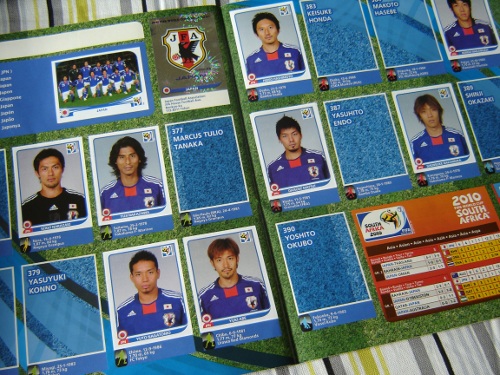 今回のWCには、これを観戦のの友としながら、サッカーを堪能している。ダンナが義母のところでもらってきたのが始まり。Bildの日曜版にタダで付いてきたもので、お店で買うと2ユーロくらいなのかな。2010年のWCの出場国とその選手、会場、ボールマスコット、ポスターなどがシールになってて、これらを集めて1冊のデータブックに仕上げていくもの。各選手のデータは生年月日、身長、体重、出身地、所属チームなんかが載っている。これ見ると、日本の選手にも180㌢超の選手がわりといるもんだね。デンマークの選手との平均身長差が6㌢って聞いたけど、デンマークの選手たちは全員180㌢以上だった。北ヨーロッパ人は長身の人が多いというけど、すごいや。因みにドイツは168㌢が最小。新キャプテンのPhilipp Lahmが、意外にも170㌢と小さめ。